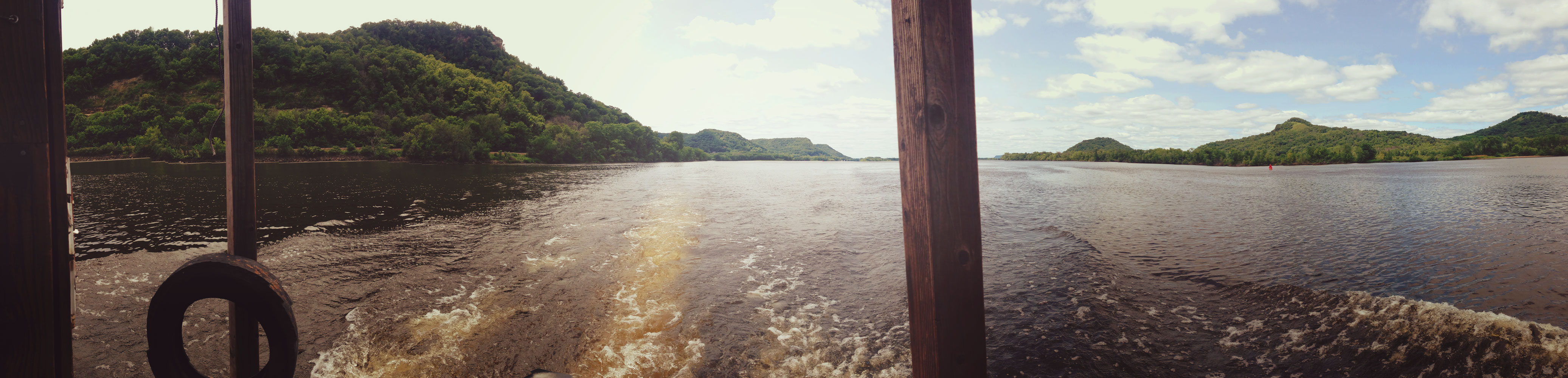 Driftless Area from the back of the shantyboat. (Scroll right >>)