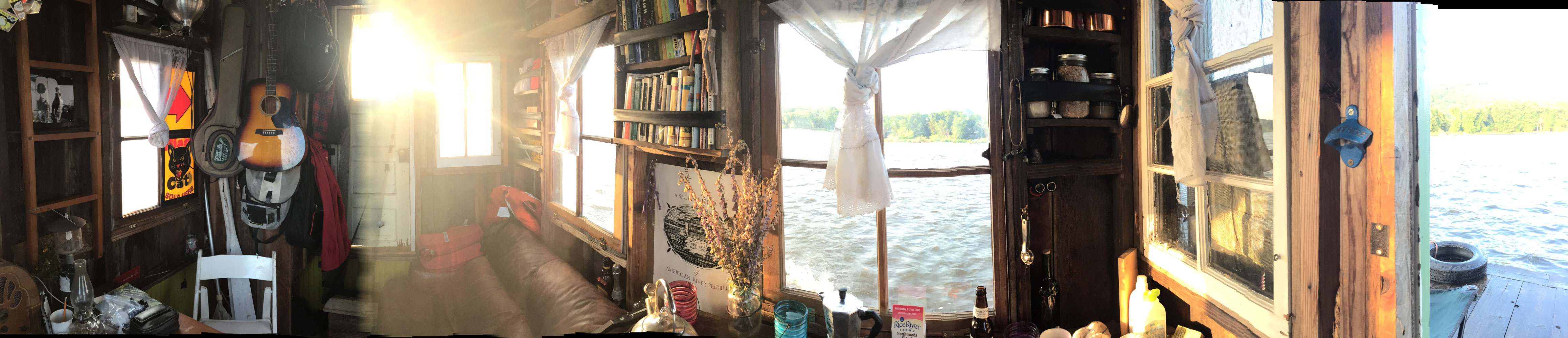 Jeremiah took a nice panoramic photo of the inside of the shanyboat. Scroll right to see the whole thing.