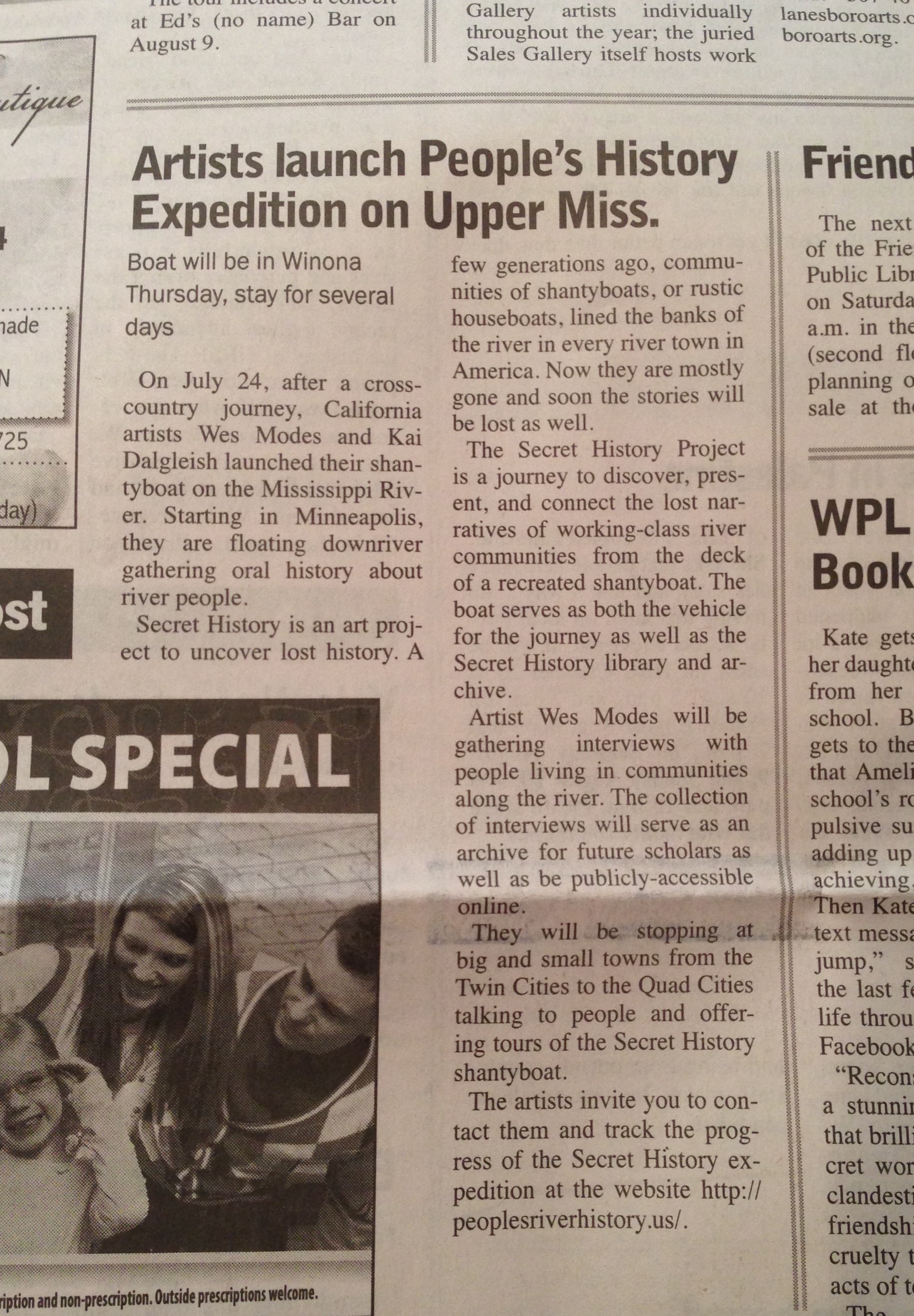 La Crosse Tribune - Artists launch People’s History Expedition on Upper Miss.