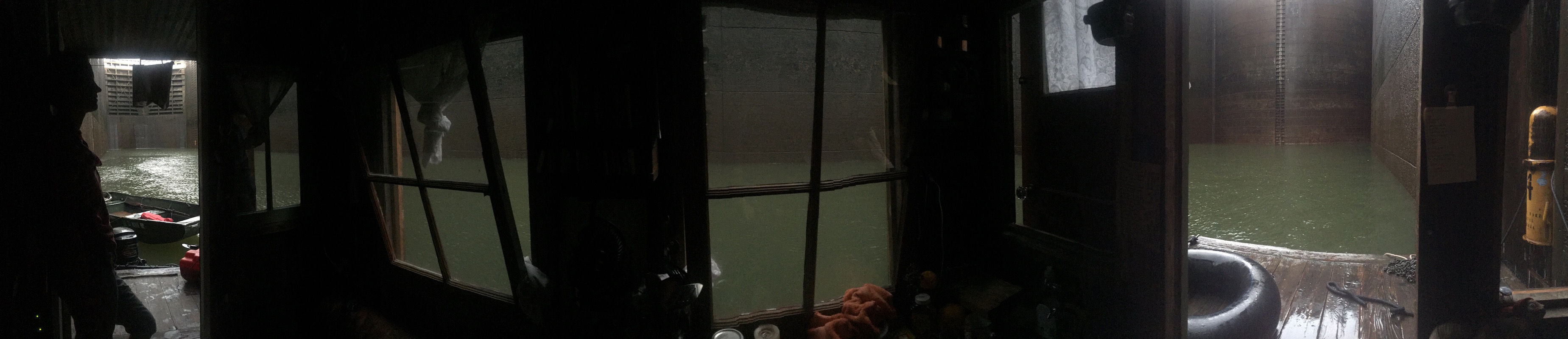 Locking down at the Fort Louden Dam, lowers the shantyboat 72 feet.
